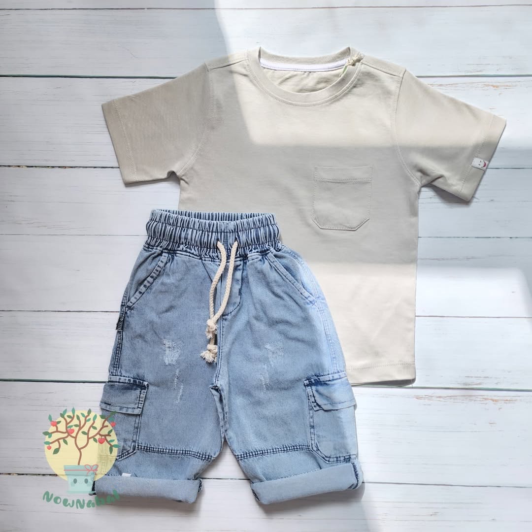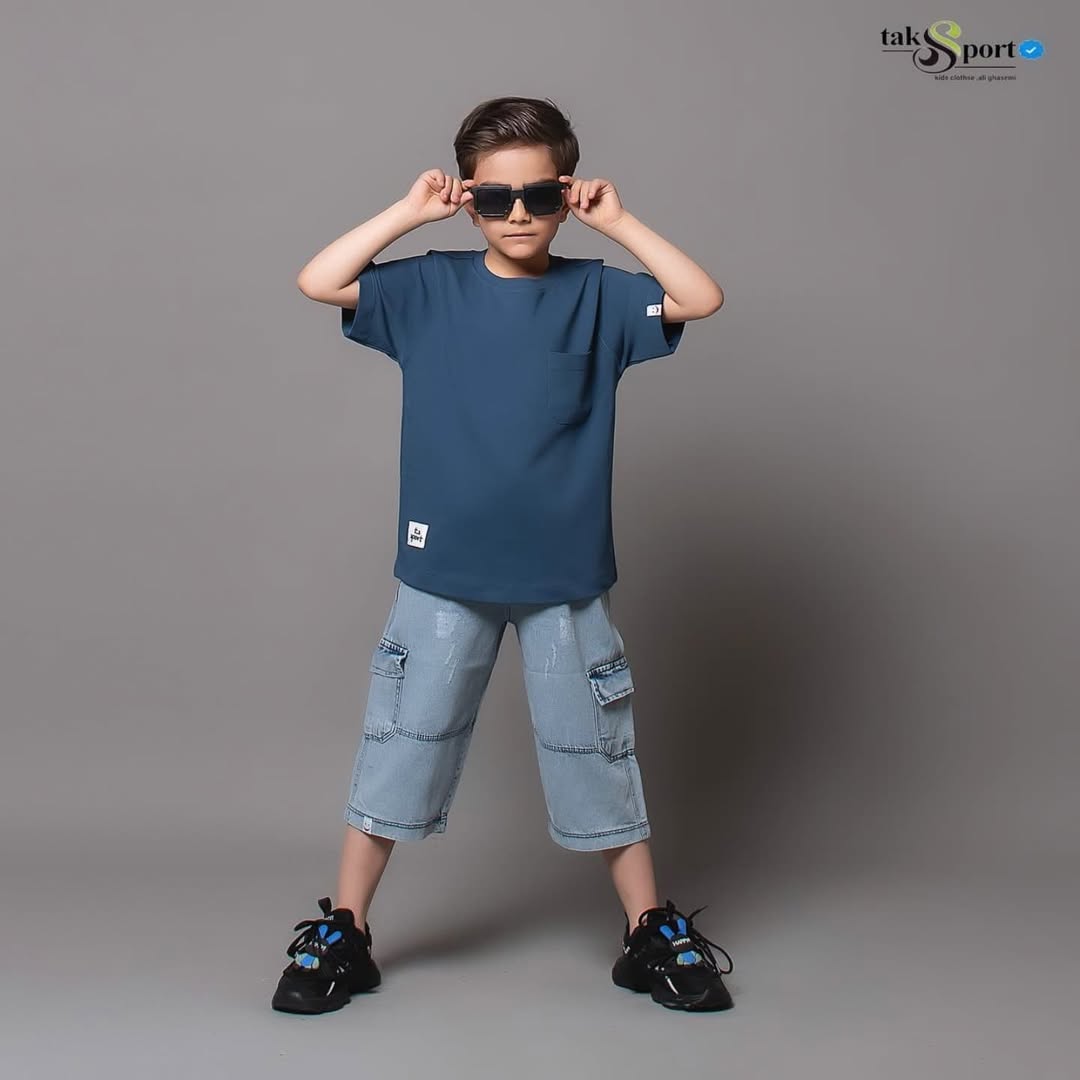 ست تیشرت نخ پنبه و شلوارک جین پسرانه